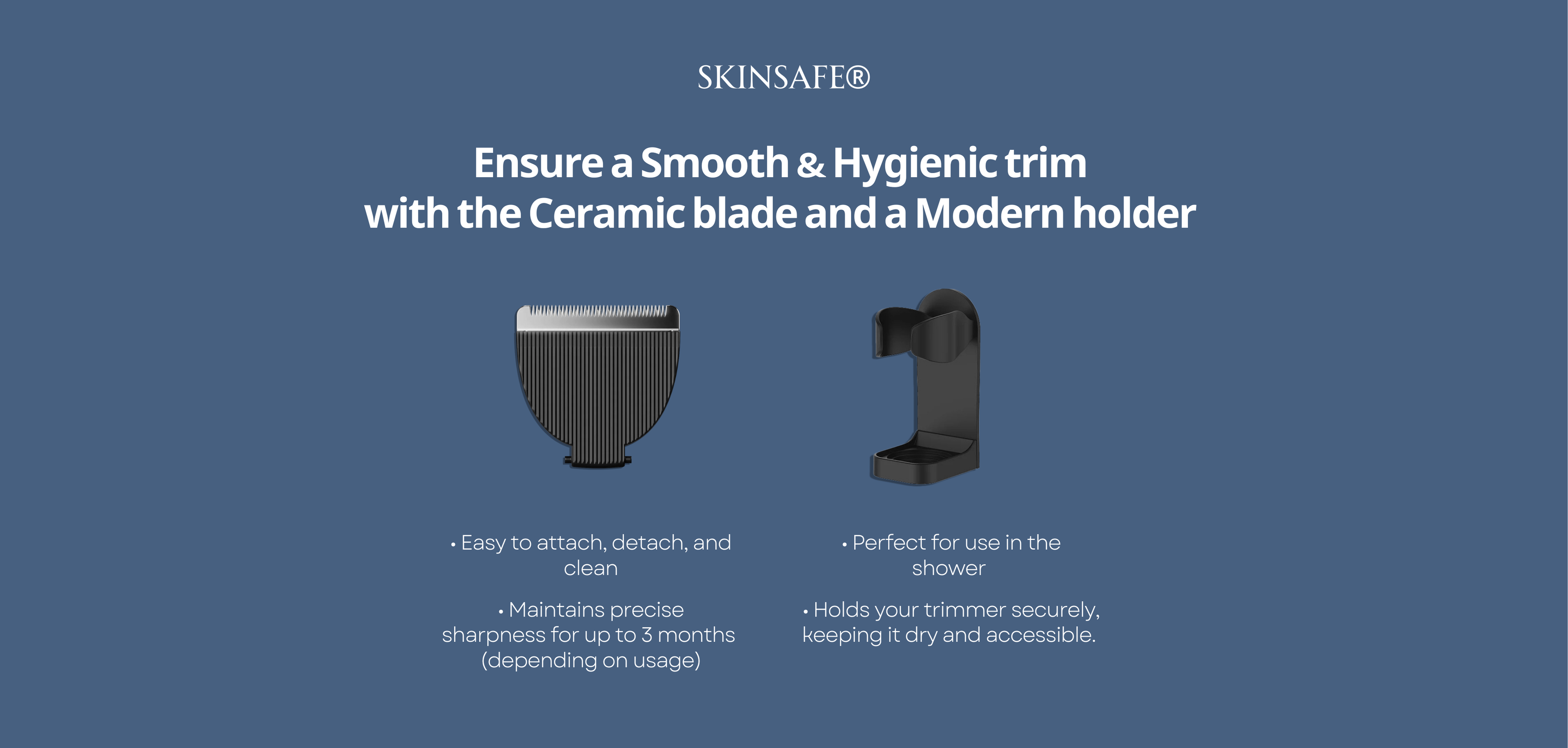 Ceramic blades with Skin-Safe technology deliver a smooth shave without nicks or irritation.